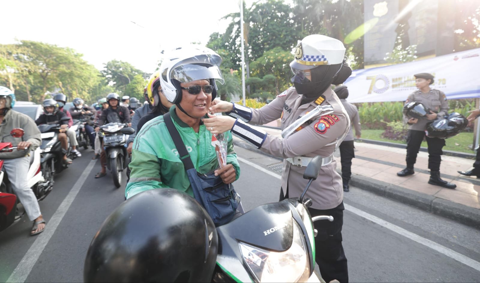 Pakor Polwan Polda Jatim,AKBP Yayuk Sri Wahyuningtyas mengatakan kegiatan ini bukan hanya sekadar gatur lalu lintas, tetapi juga bentuk kepedulian dan apresiasi kami kepada masyarakat yang sudah tertib berkendara
